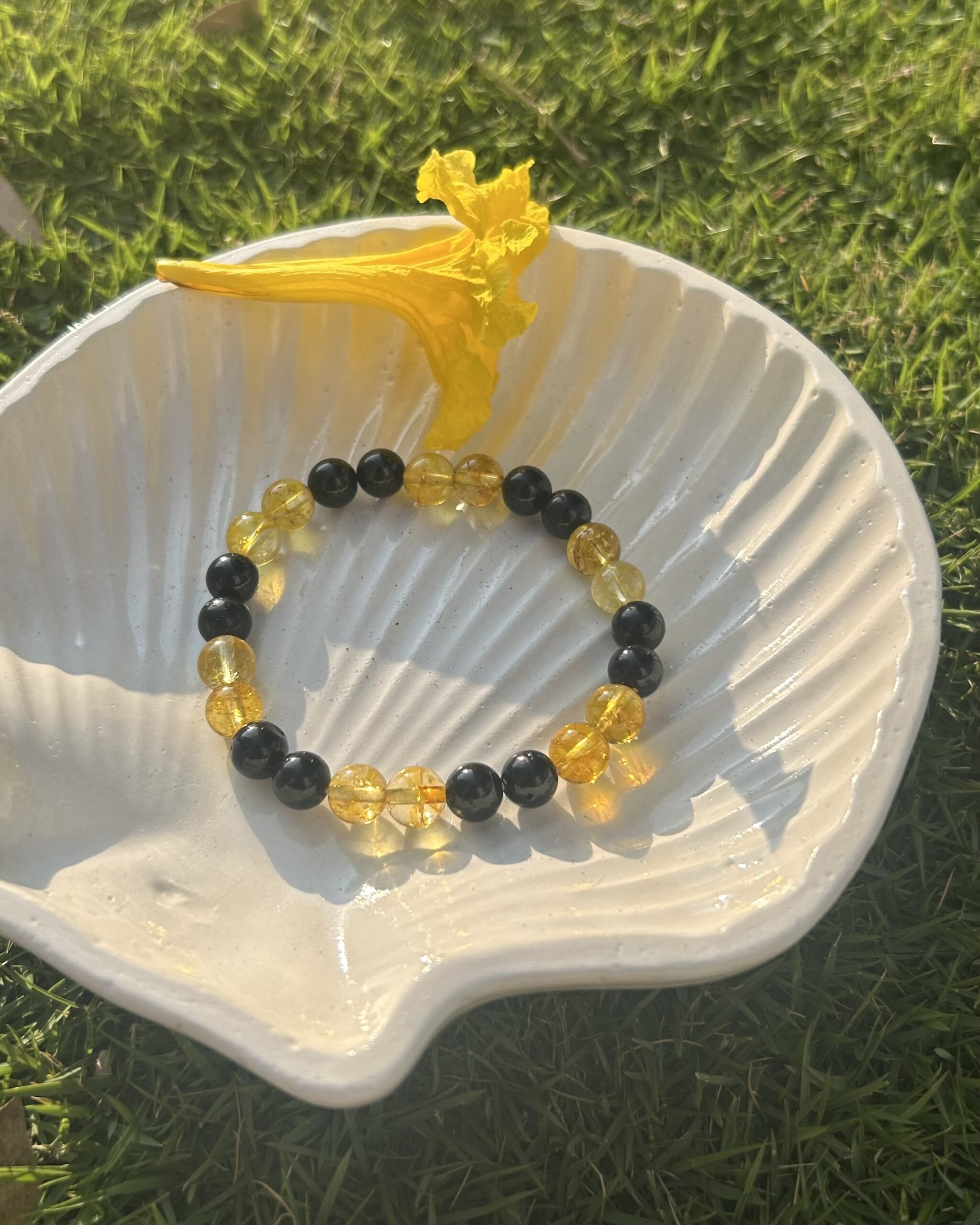Combine the power of protection and prosperity with the Citrine & Black Tourmaline Bracelet. While Citrine attracts wealth and positivity, Black Tourmaline shields against negativity, creating a balanced energy field.