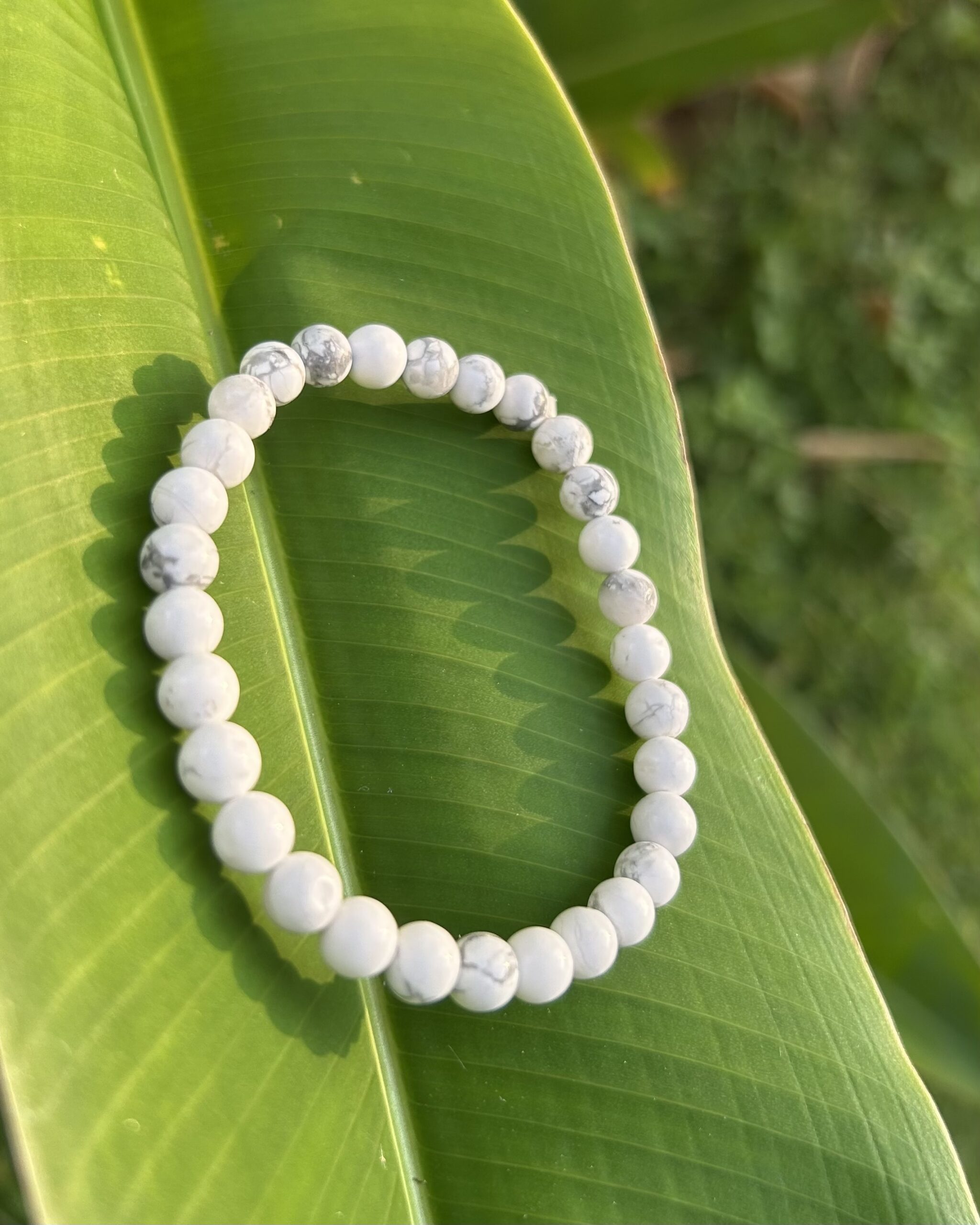 Embrace peace and tranquility with the Howlite Bracelet. This soothing stone calms an overactive mind, promotes restful sleep, and teaches patience, making it ideal for those seeking relaxation and stress relief.